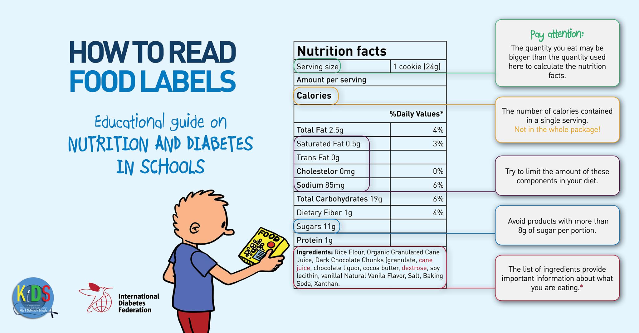 Food Labels | CDC - Centers for Disease Control and Prevention 20.09.2022 · Food Labels. Español (Spanish) Related Pages. Understanding the Nutrition Facts label on food items can help you make healthier choices. The label breaks down the amount of calories, carbs, fat, fiber, protein, and vitamins per serving of the food, making it easier to compare the nutrition of similar products. Be sure to look at different brands of the same … Learning To Read Labels :: Diabetes Education Online On a nutrition food label, subtract the fiber from the total carbohydrate amount. When you read food labels, the grams of sugar are already included in the total carbohydrate amount, so you do not need to count this sugar amount separately. The grams of sugar listed include both natural sugars, from fruit or milk, and added sugars. How to read food labels | healthdirect the country where the food was produced; Understanding nutrition claims. Some labels tell you what percentage of the recommended daily intake is provided by 1 serve of the product. This helps you to work out how the food fits into a balanced diet. Read more about recommended daily intakes for adults and recommended daily intakes for children.